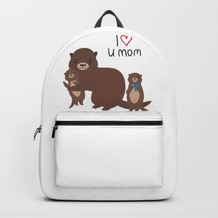 I Love You Mom Funny Brown Kids Otters With Fish On White