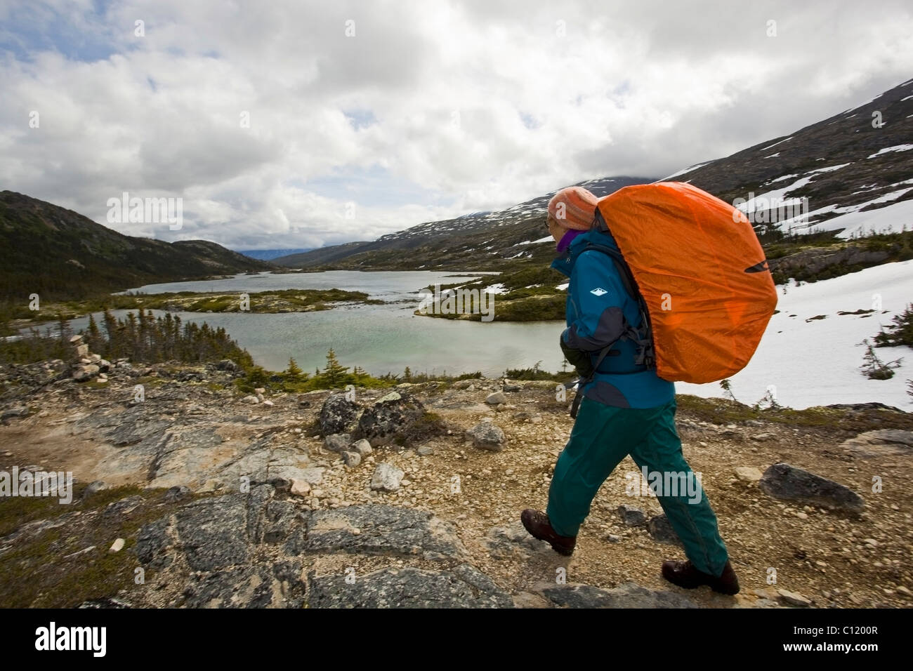 Hiker Backpacker Descending Hoge Pass Alpine Tundra Donjek River