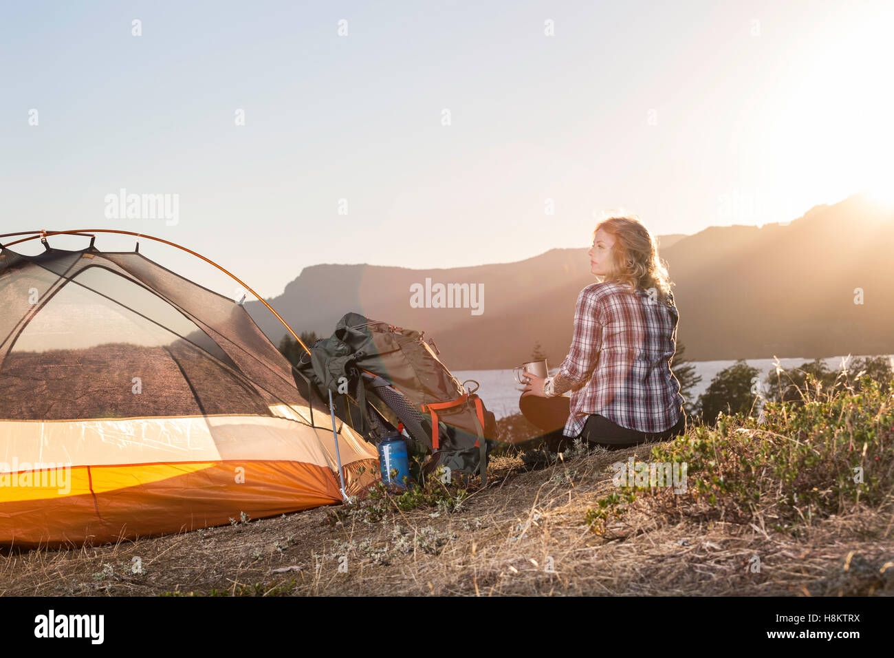 Sun Setting Behind Backpacking Tent Stock Photos Sun Setting