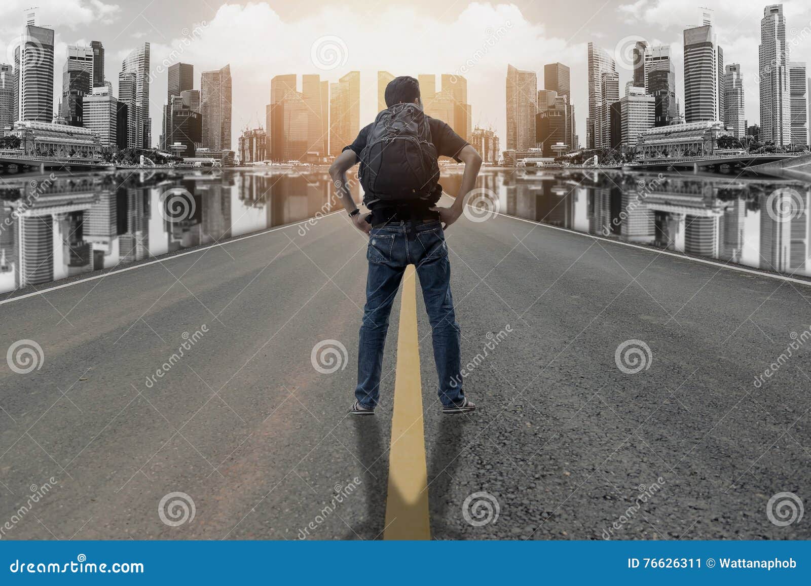 Backpacker On The Road In The City Stock Image Image Of Tourist