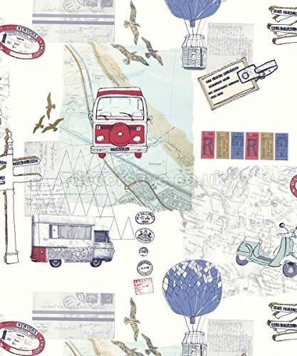 Arthouse Backpacker Map Travel Red Blue White Wallpaper 889700 Ebay