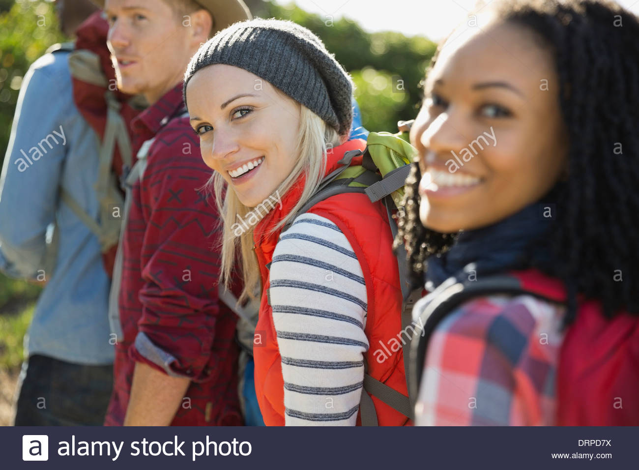 Portrait Female Backpacker Friends Outdoors Stock Photos Portrait