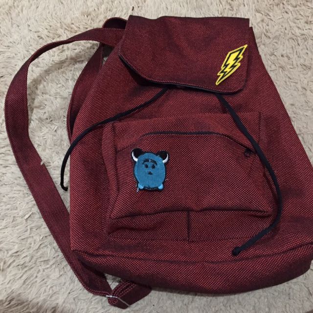 Reprice Tas Backpacker Merah Patch Preloved Fesyen Wanita Tas